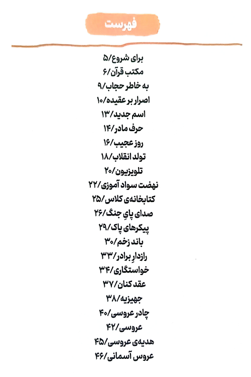 ۱۲) آقا مصطفی: در این کتاب با بسیجی فعال و پرتلاشی به نام شهید مصطفی صدرزاده آشنا میشویم که با روحیه انقلابی رشد یافت.