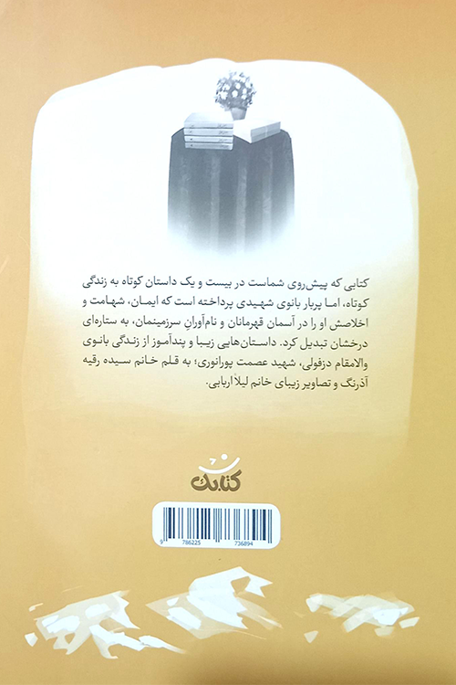 ۱۵) عروس آسمانی: این کتاب نوشته سیده رقیه آذرنگ مروری بر زندگی شهیده عصمت پورانوری است که گرچه عمر کوتاهی داشت ولی توانست با تلاش و عمل مخلصانه نمره قبولی را از درگاه خداوند کسب نماید.