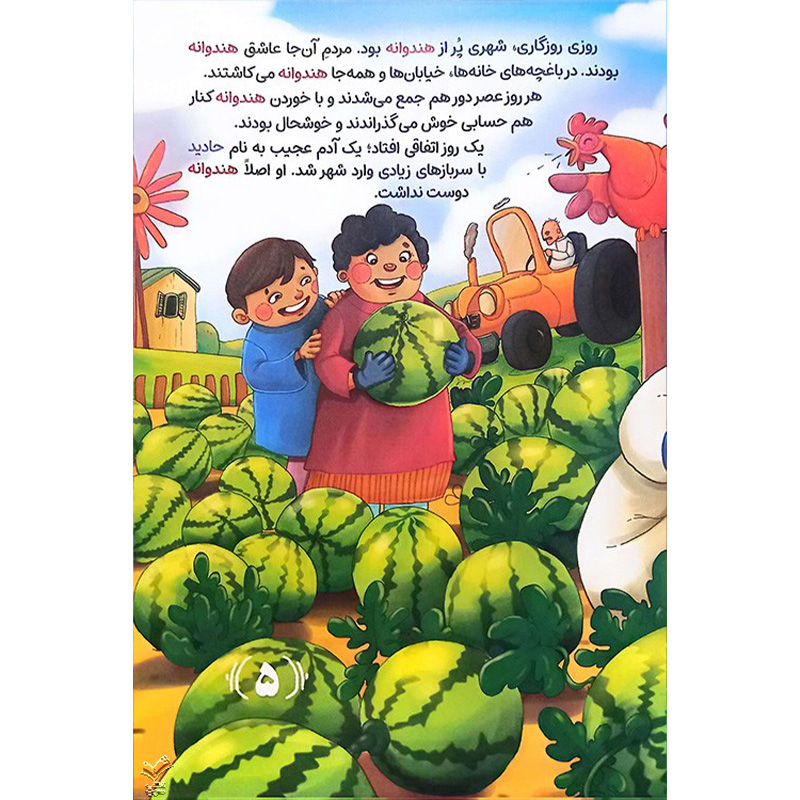 روزی روزگاری شهری پر از هندوانه بود. مردم آن شهر عاشق هندوانه هایشان بودند. یک روز اتفاقی افتاد. یک آدم عجیب به نام حادید با سرباز های زیادی ئارد شهر شد. حادید برای مردم شهر نقشه های شومی کشیده‌بود.